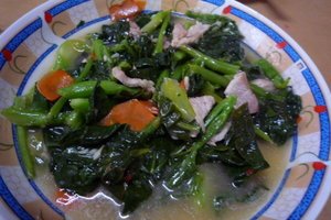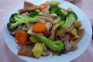 原来你妈妈也是挺会煮的。芥兰要上碟时可以加一些黄酒,花雕也行,味道很好噢!